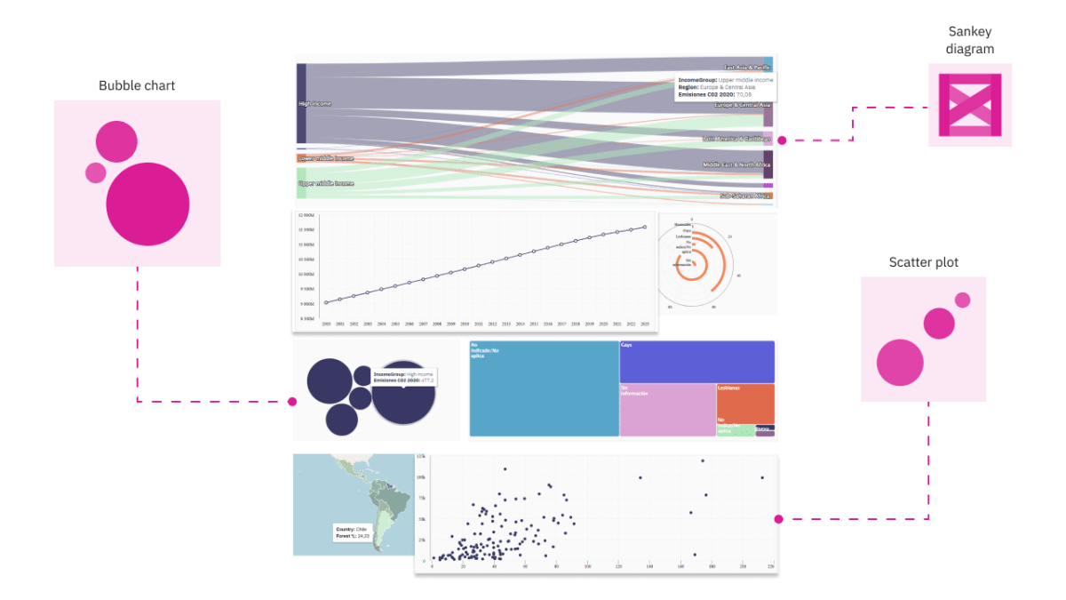 Create professional visualizations in minutes, without the need for knowledge in data science, design, or programming