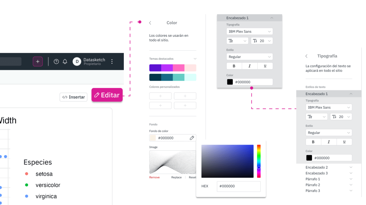 Personaliza fácilmente colores, tipografía y estilos según tu identidad visual